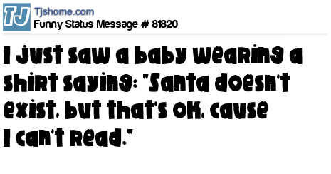 - # 76319 Seen a baby wearing a shirt saying; "Santa doesn't exist, but that's okay, because I can't read."