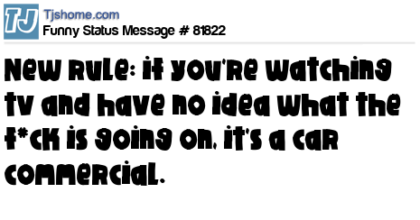 X New rule: if you're watching tv and have no idea what the f*ck is going on, it's a car commercial.