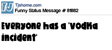- # 131905 Me: I'm so over her. Vodka: No you're not, you should text her. Me: Really? Vodka: Hell yes! 25 times.