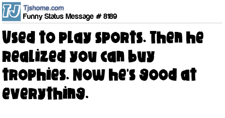 - # 84434 I used to play sports. Then I realised you can buy trophies.. Now I am good at everything.