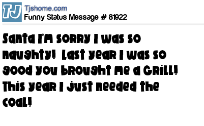 X Santa I'm sorry I was so naughty! Last year I was so good you brought me a Grill! This year I just needed the coal!