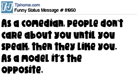 X says As a comedian, people don't care about you until you speak, then they like you. As a model it's the opposite.