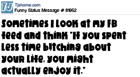 X says Sometimes I look at my FB feed and think "If you spent less time b!tching about your life, you might actually enjoy it."
