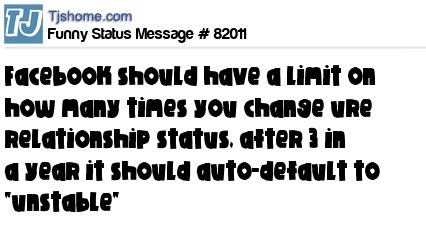 - # 100869 Facebook should have a limit on how many times you can change your relationship status - after three times it should default to unstable