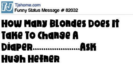 - # 63313 How many blondes does it take to change a diaper? I don't f*ckin' know ask Hugh Hefner