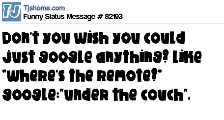 - # 93865 Don`t you wish you could just Google anything? Like; "where`s the remote?" Google: "under the couch"