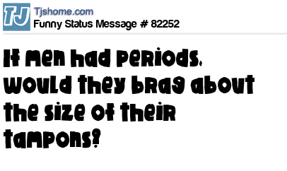 - # 13741 if men had periods they would brag about the size of there tampons!!!