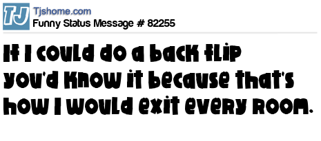 X If I could do a back flip you'd know it because that's how I would exit every room.