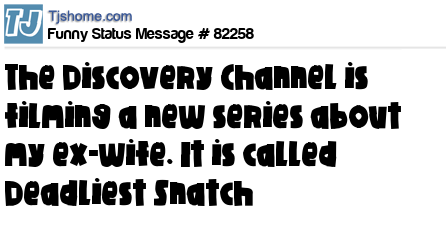 - # 148231 I was disappointed to learn that the Discovery Channel's program "Deadliest Catch" wasn't about first marriages.