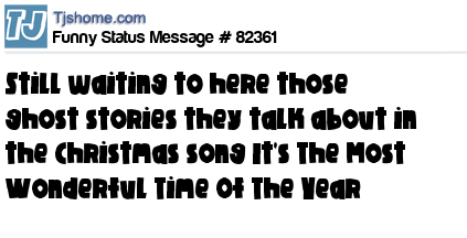 X is Still waiting to here those ghost stories they talk about in the Christmas song It's The Most Wonderful Time Of The Year