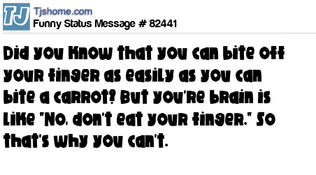 X is Did you know that you can bite off your finger as easily as you can bite a carrot? But you're brain is like "No, don't eat your finger." So that's why you can't.
