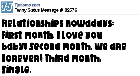 X is Relationships nowadays: First month, I love you baby! Second month, we are forever! Third month, Single.