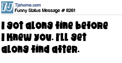 - # 8462 got along fine before I knew you... and I'll be even better after you're a faded memory.