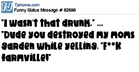 - # 89206 Friend tellin me " Bro I wasn`t that drunk…." Me: “Dude you destroyed my gf's garden at 4:00AM while shouting and screaming "F**k Farmville!"