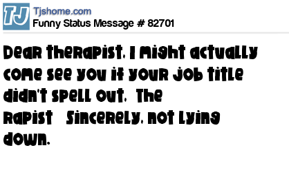 X is Dear therapist, I might actually come see you if your job title didn't spell out, “The rapist” Sincerely, not lying down.