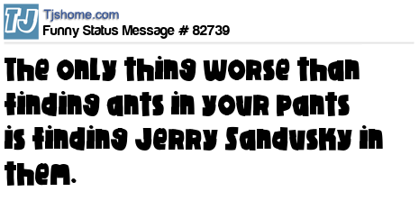 X says The only thing worse than finding ants in your pants is finding Jerry Sandusky in them.