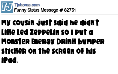 X My cousin just said he didn't like Led Zeppelin so I put a Monster Energy Drink bumper sticker on the screen of his iPad.