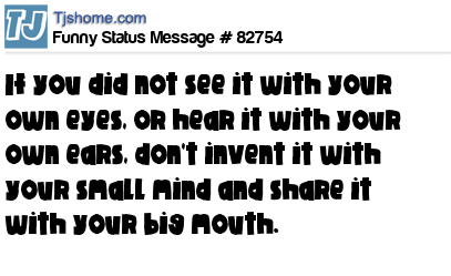 - # 137845 if you didn't hear it with your own ears or see it with you own eyes. Don't invent it with your small mind, and share it with your big mouth.
