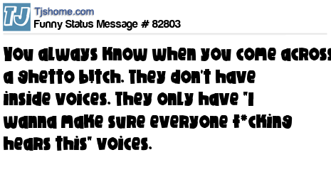 X You always know when you come across a ghetto b!tch. They don't have inside voices. They only have "I wanna make sure everyone f*cking hears this" voices.