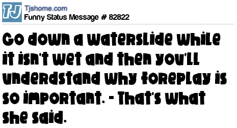 - # 83000 Go down a water slide while it isn't wet and then you'll understand why foreplay is so important