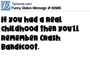 X is If you had a real childhood then you'll remember Crash Bandicoot.