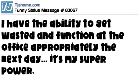 X says I have the ability to get wasted and function at the office appropriately the next day... it's my super power.