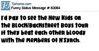 X I'd pay to see the New Kids on the Block/Backstreet Boys tour if they beat each other bloody with the members of N'Synch.