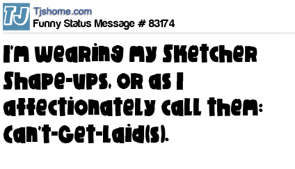 X I'm wearing my Sketcher Shape-ups, or as I affectionately call them: Can't-Get-Laid(s).