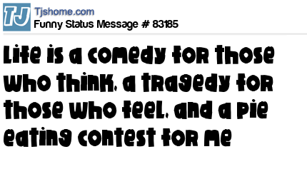 - # 83583 Life is a comedy for those who think, a tragedy for those who feel, and a pie eating contest for me.