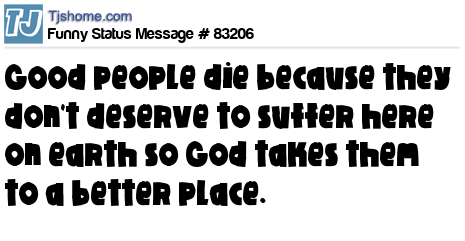 X says Good people die because they don't deserve to suffer here on earth so God takes them to a better place.
