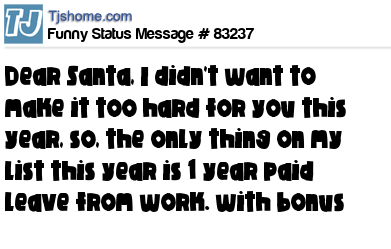 X is Dear Santa, I didn't want to make it too hard for you this year, so, the only thing on my list this year is 1 year paid leave from work. with bonus
