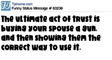 X is The ultimate act of trust is buying your spouse a gun, and then showing them the correct way to use it.
