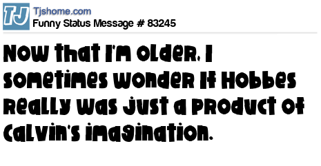 X Now that I'm older, I sometimes wonder If Hobbes really was just a product of Calvin's imagination.