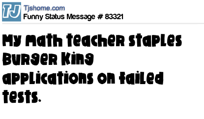 - # 204798 Teachers: Want to motivate your students? When you give them back a failed test, staple a Burger King application to it.