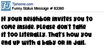 X says If your neighbor invites you to come inside, please don't take it too literally. That's how you end up with a baby or in jail.
