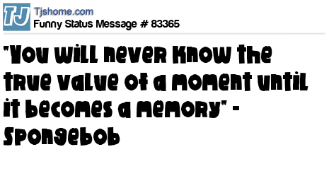 X "You will never know the true value of a moment until it becomes a memory" - Spongebob