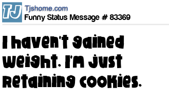 - # 196076 No, I didn't gain weight over the holidays....I'm just retaining Christmas cookies, that's all....