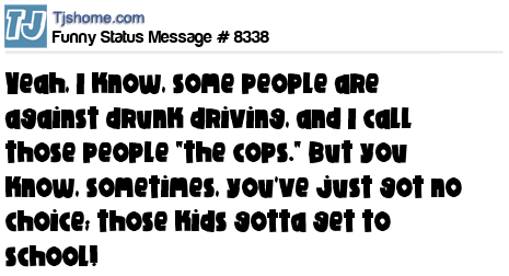 X Yeah, I know, some people are against drunk driving, and I call those people "the cops." But you know, sometimes, you've just got no choice; those kids gotta get to school!