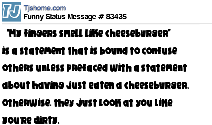 X "My fingers smell like cheeseburger" is a statement that is bound to confuse others unless prefaced with a statement about having just eaten a cheeseburger. Otherwise, they just look at you like you're dirty.