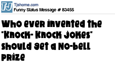 - # 187883 Who ever invented the knock knock joke should get the no bell prize.