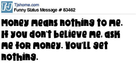 - # 125495 If you are my friend on Facebook and you need money, don't ask because I have no money. If you are family, or a friend, may I borrow some money? If you are a female and cute, don't worry, I have lots of money $$$