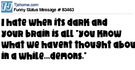 - # 66235 I hate when its dark and my brain is like "Hey you know what we haven't thought of in a while?" Monsters.