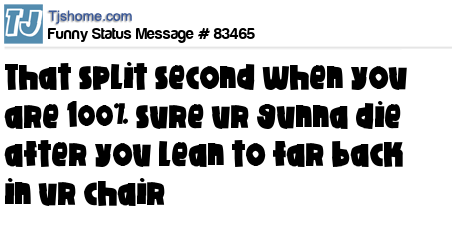- # 53710 you know when you lean back in your chair and almost fall over??? I feel like THAT all the time...