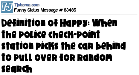 X is Definition of Happy: When the police check-point station picks the car behind to pull over for random search