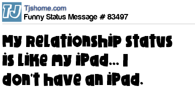 - # 83471 My relationship status is like my iPad... I don't have an iPad
