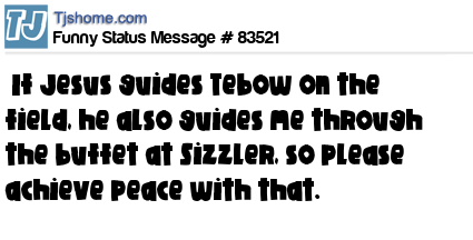 X If Jesus guides Tebow on the field, he also guides me through the buffet at Sizzler, so please achieve peace with that.