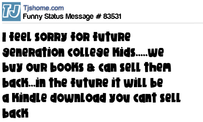 X says i feel sorry for future generation college kids.....we buy our books & can sell them back...in the future it will be a kindle download you cant sell back