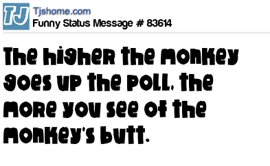 X says The higher the monkey goes up the poll, the more you see of the monkey's butt.