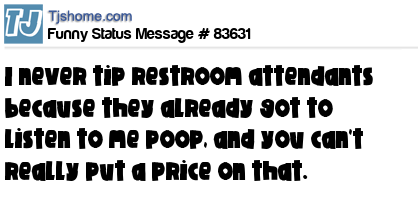 X says I never tip restroom attendants because they already got to listen to me poop, and you can't really put a price on that.