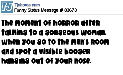 X the moment of horror after talking to a gorgeous woman, when you go to the men's room and spot a visible booger hanging out of your nose.